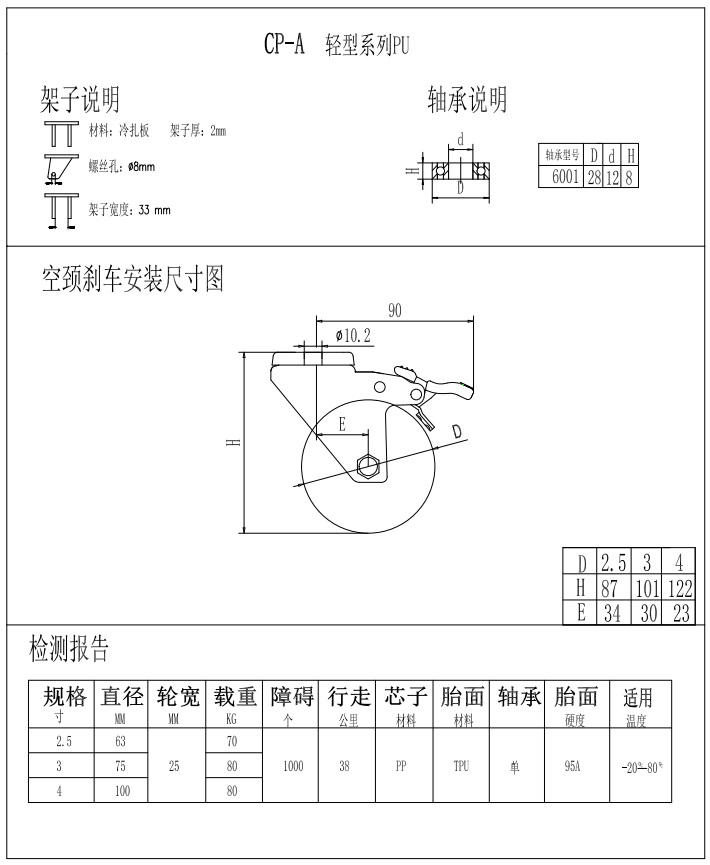輕型腳輪-CP-A3-2561空頸剎車PU