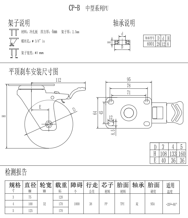 中型腳輪-CP-B4-3231萬向剎車